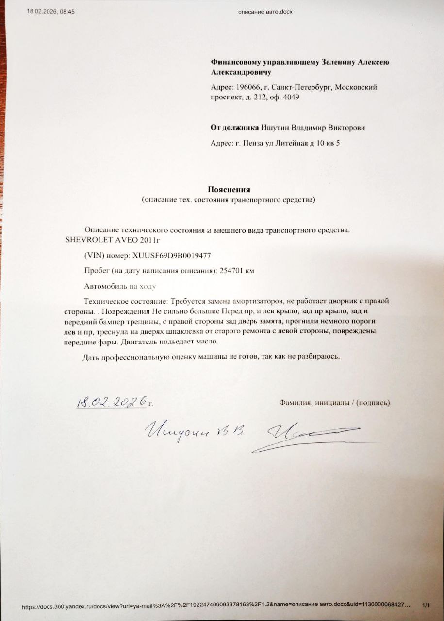 | Порядок ознакомления с имуществом | С имуществом по можно ознакомиться по адресу местонахождения лота, с момента публикации сообщения о продаже имущества и до окончания приема заявок по предварительному согласованию в рабочие дни с 10:30 до 18:00 (МСК) с организатором торгов по электронной почте zelenintorgi@mail.ru. |